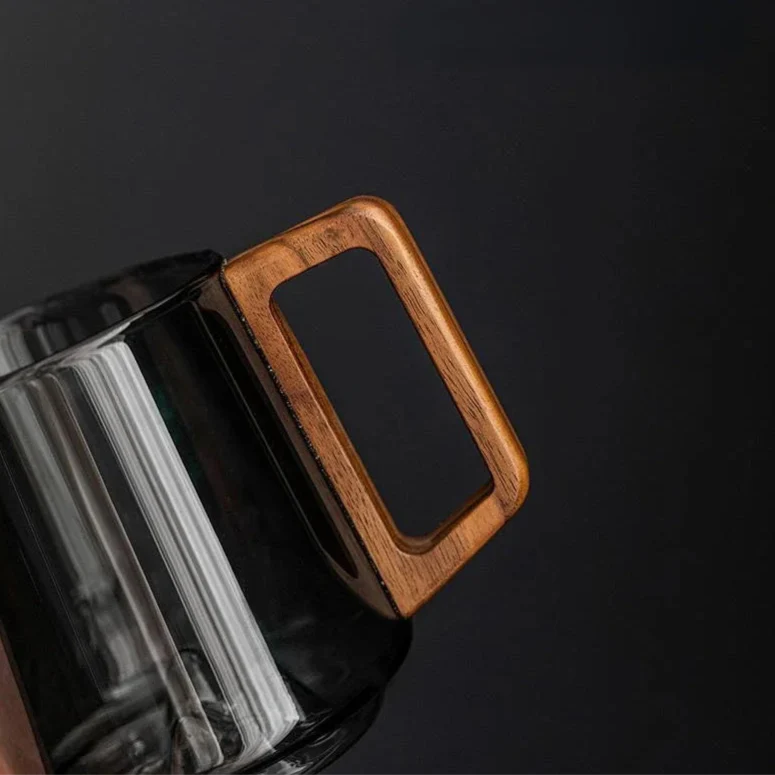 - Materialen: De mok is gemaakt van hittebestendig borosilicaatglas en heeft een gladde houten handgreep.