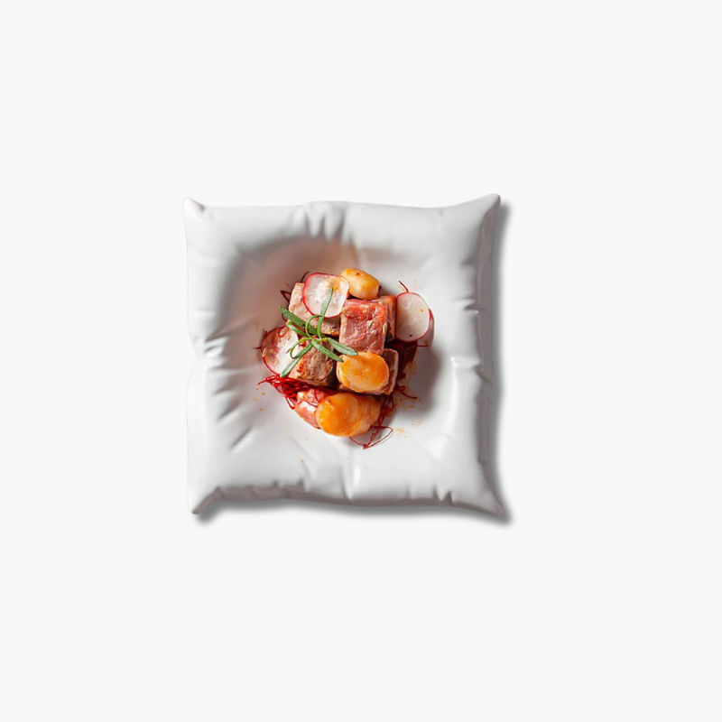 Deze kom is gemaakt van hoogwaardig porselein en heeft een opvallende vorm en een ontwerp dat doet denken aan een zachte wolk, waardoor hij elke tafel een verfijnde en elegante uitstraling geeft. Zijn verfijnde en delicate uiterlijk, in combinatie met zijn doorschijnende kwaliteit, geeft uw eetervaring een luxueuze toets.